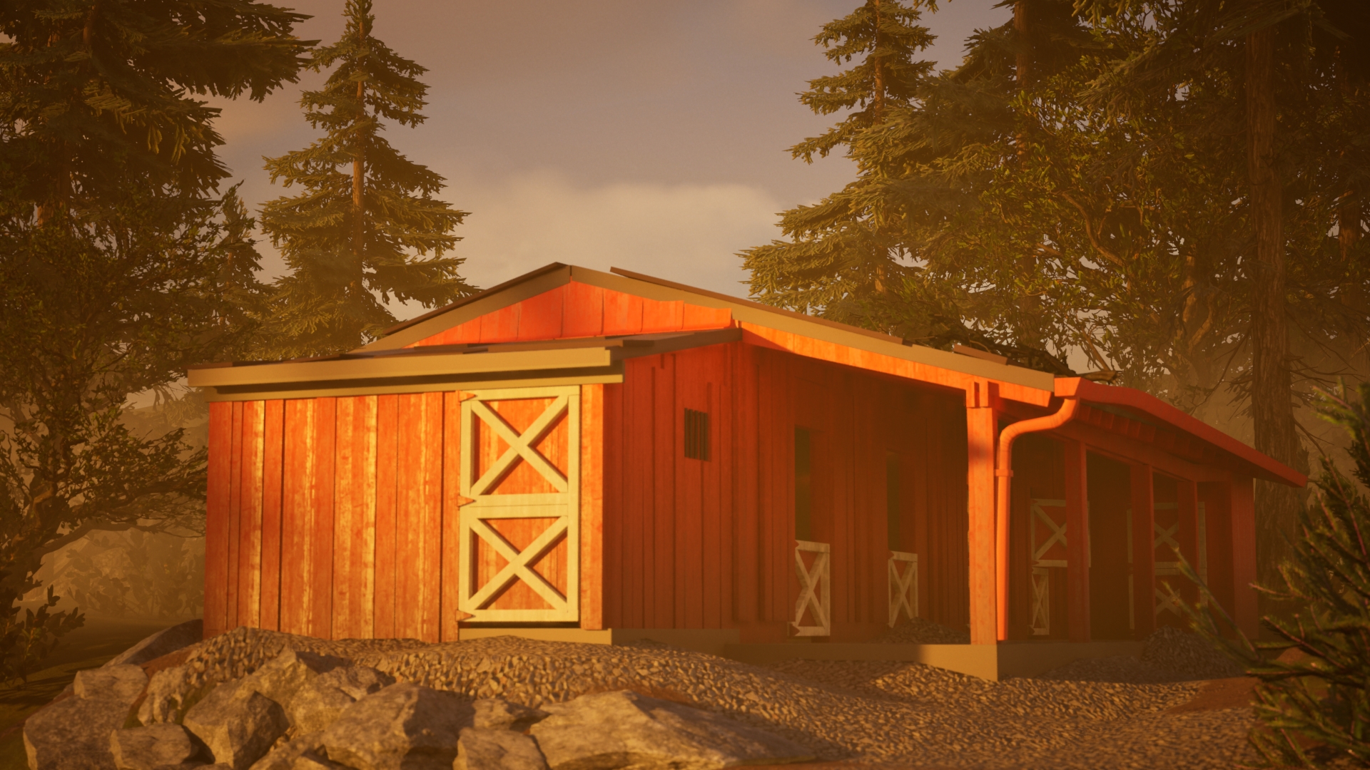 These are a series of exterior lighting studies done in UE5. The barn and surrounding environment are mostly based on assets created in This portfolio piece.